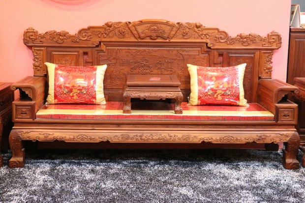 關于該系列沙發的具體詳情細節,考慮到其雕琢繁冗圖案眾多的緣故,我們就著重從其紋飾入手,通過解析其寓意、并從外觀結構上依次進行介紹、另外針對產品的制作工藝、實用性等特點進行補充描述。