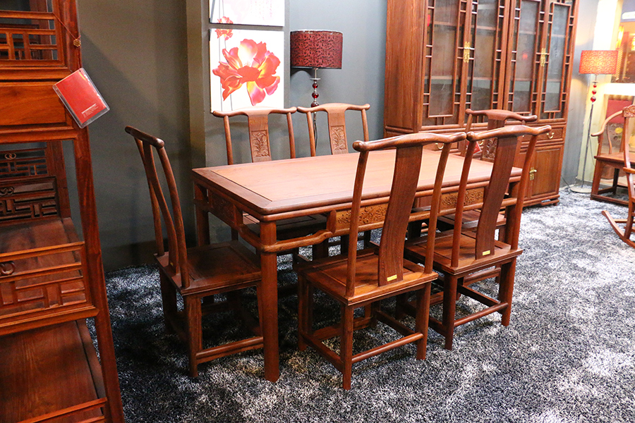 三、紅木家具的擺放要注意平緩正,家具全體要與地面堅持筆直,不然易引起家具全體和門等部位的變形,終究形成縫口開縫,有損家具的壽數;